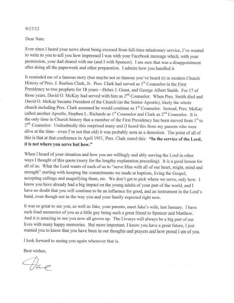 While I don’t have many talents, I do feel like I’m a halfway-decent writer, so I wanted to write this as a tribute to Dave Buhler. He was a man, who, through his example, both directly and indirectly influenced me. I have always thought of Dave when I hear or think of that quote from J. Reuben Clark – “In the service of the Lord, it is not where you serve but how.”